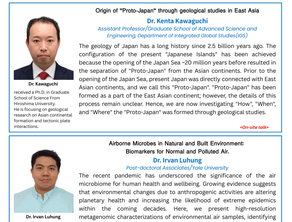 We are pleased to inform you that the above one-day seminar will be held as follows: - Date and Time: Saturday, September 27, 2025, 10:00–17:00 - Venue: Faculty Club 2nd Floor, Hiroshima University - Language: English - Detai... -