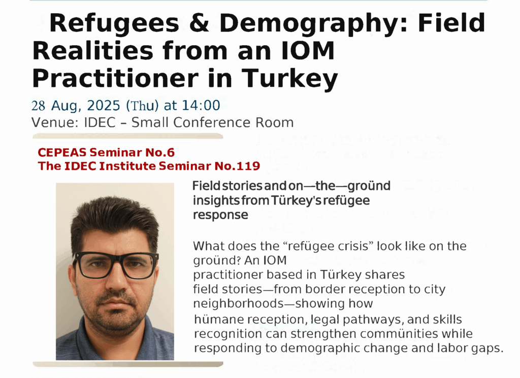 【IDEC Seminar No.119/CEPEAS Seminar No.6】Refugees & Demography: Field Realities from an IOM Practitioner in Turkey