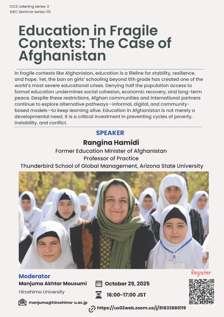【IDEC Seminar No.131/CICE Listening Series No.2】Education in Fragile Contexts : The Case of Afghanistan
